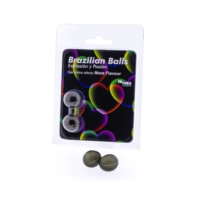 Discover an explosion of pleasure and aromas with the 2 Brazilian Balls Explosion de Aromas Gel Excitante Efecto More Flavour! These Brazilian balls are designed with an exciting gel lubricant with a flavor effect that will transport you to a world of exciting sensations.