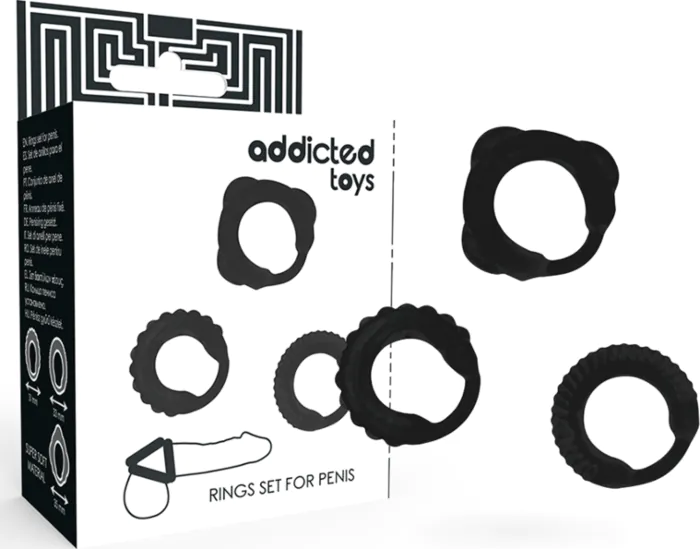 Experience intensified pleasure with the Addicted Toys penis rings set. Designed to enhance firmness and prolong performance, this set is for those who seek a stronger and more controlled experience.