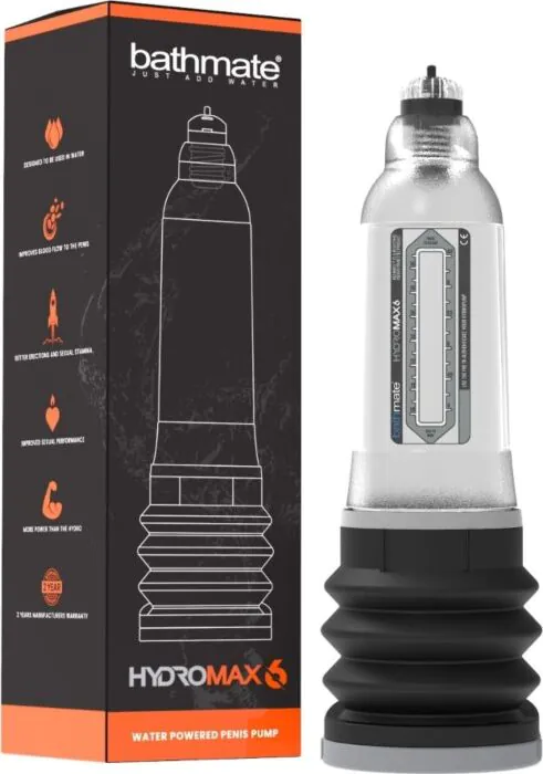 The Hydromax 6 is a water-powered penis pump from Bathmate designed for men whose erect length is 10–15 cm. It uses an enlarged bellows system that delivers around 35% more pumping power than earlier designs. Intended for regular bath or shower use, it’s a practical choice if you want a non-electrical, one-handed pump with improved comfort at the base and better grip control.