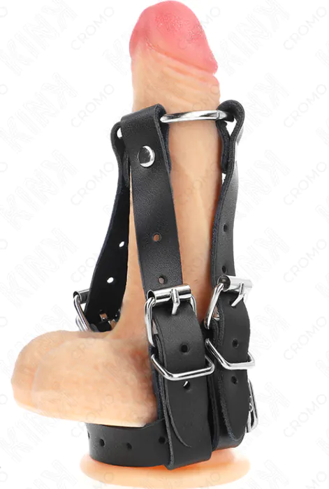 Experience intense stimulation and control with the KINK penis ring featuring adjustable straps. Great for BDSM enthusiasts seeking a tailored fit and enhanced pleasure.