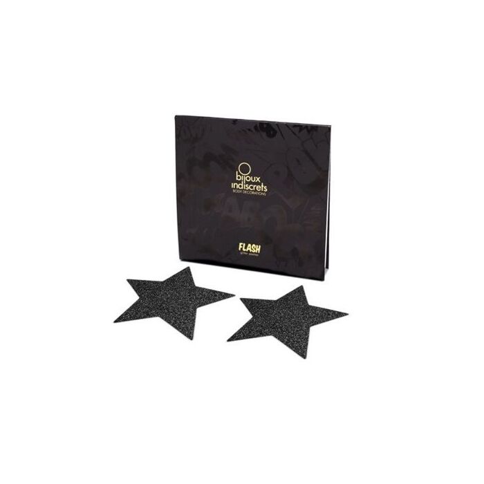 Shine with your charms and become a true seduction superheroine with the Bijoux Black Star Flash Nipple Covers! These fabulous self-adhesive body decorations will allow you to reveal your true identity and conquer with the power of your super charms.