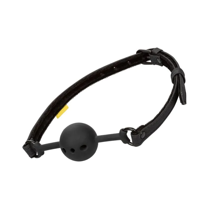 The Breathable Boundless Ball Gag is the perfect erotic accessory for couples looking to experiment with erotic restraint play or for fierce fetishists wishing to satisfy their deepest desires. Indulge in your naughtiest fantasies while securing the flexible silicone ball, designer vegan leather straps, and adjustable closure. The flexible and breathable ball brings a primal passion to your bedroom, while each muffled moan increases pleasure and intensifies desire for all involved. Immerse yourself in adventurous desire and indulge in your most sensational erotic fantasies with this comfortable breathable ball gag.