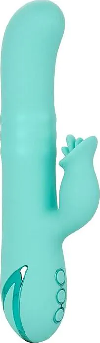 A rechargeable rabbit vibrator from CALEXOTICS with three motors, rotating beads and a triple flutter teaser for combined internal and external stimulation. Made in seamless premium silicone and waterproof for baths, it suits users who want strong, varied sensations and precise G‑spot action without fiddly controls.