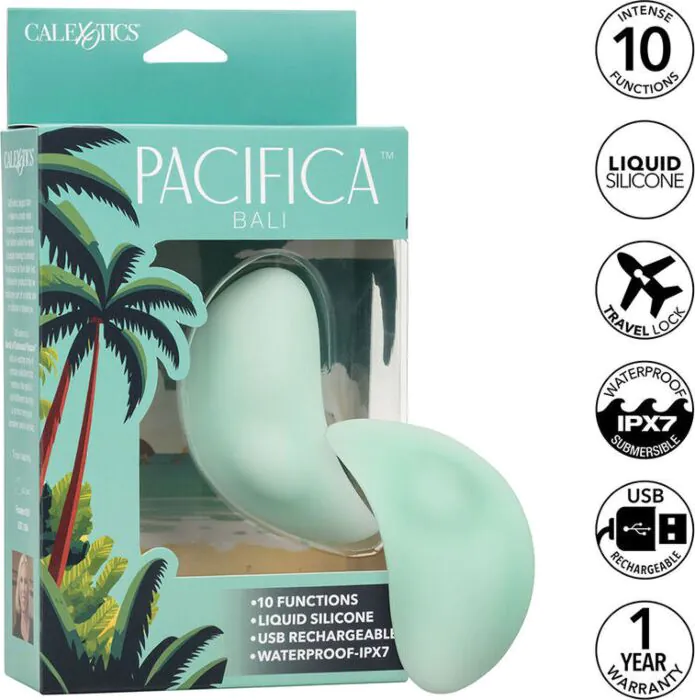 Intense clitoral stimulation with an elegantly curved design and a bulbous accent for enhanced pleasure. The Pacifica Bali features 10 powerful functions of vibration, pulsation, and escalation crafted from luxurious, soft, and durable liquid silicone.