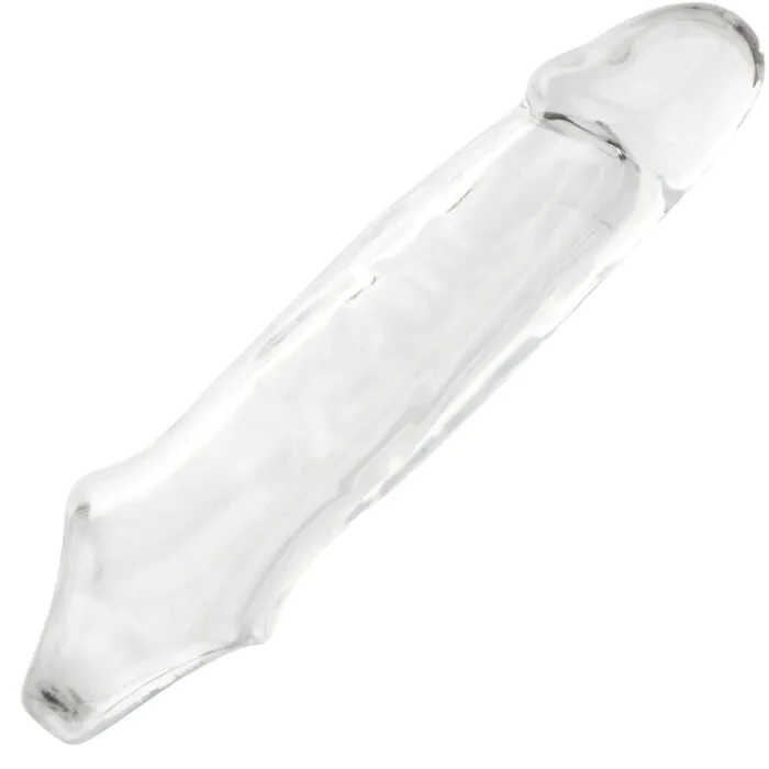 A transparent, hollow extension sleeve from CALEXOTICS that adds noticeable length and girth while keeping a natural feel. The ultra‑soft head increases thickness where it matters and the integrated scrotum strap helps keep the sleeve in place. A good choice if you want a simple, non-electronic boost to size with visual impact and reliable stability.