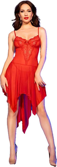Elevate your intimate moments with this charming red babydoll, expertly crafted from sheer mesh tulle and adorned with romantic lace accents. The playful design reveals just the right amount while maintaining an air of mystery, making it an enticing addition to your lingerie staples.