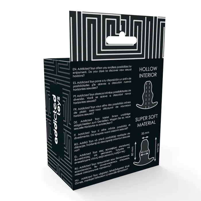 The anal dilator "Addicted" is much more than just a toy. With its innovative design, it incorporates two connected rings of different sizes that allow you to explore unique sensations as you delve into a world of pleasure. Start with the smaller ring and experience how it widens as you insert it deeper. Its hollow tube gives you the possibility to combine this anal plug in various ways, adding vibrators, lubricants, or other objects of your choice through the hole.