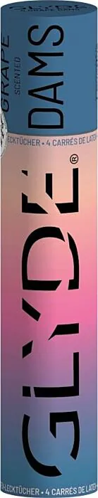 SHEER GLYDE oral dams are silky, thin latex sheets (25×15 cm) scented with grapes and supplied in a pack of four. Lightweight and portable, they give you a simple, hygienic barrier for oral contact with vulva or anus and can be used for intimate contact where a protective layer is wanted. A practical choice if you want a discreet, ready-to-use barrier.