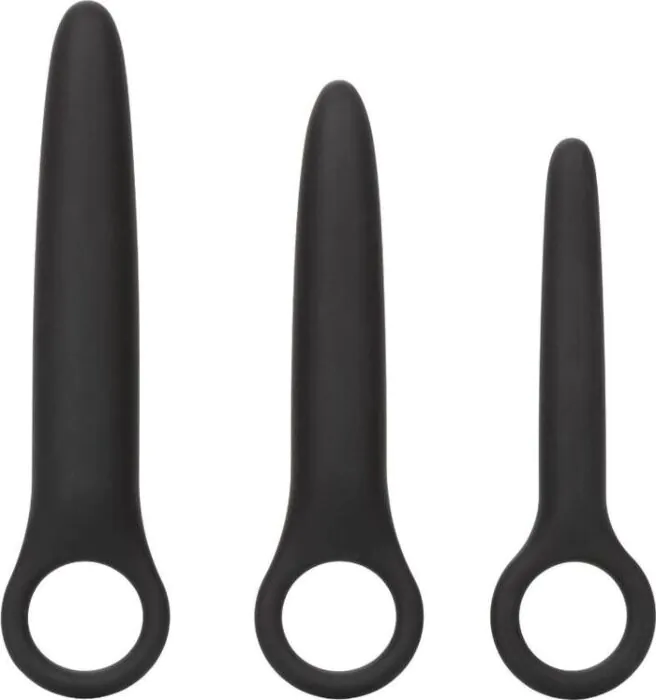 A three-piece graduated silicone dilator set from CALEXOTICS designed for gentle, progressive dilation and comfortable handling. Each probe is seamless and tapered for easier insertion, with a sturdy finger loop for control or to pair with a mini bullet (not included). Suited to those starting pelvic stretching or anyone wanting a versatile, body‑safe silicone set for gentle internal stimulation and practice.