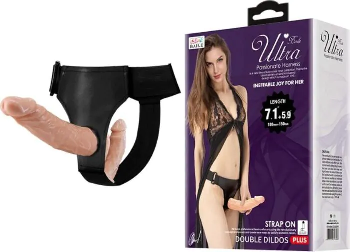 Experience simultaneous pleasure with the BAILE Ultra Passionate dual-ended dildo. Designed for shared enjoyment, it features an adjustable harness for comfort and effective stimulation.