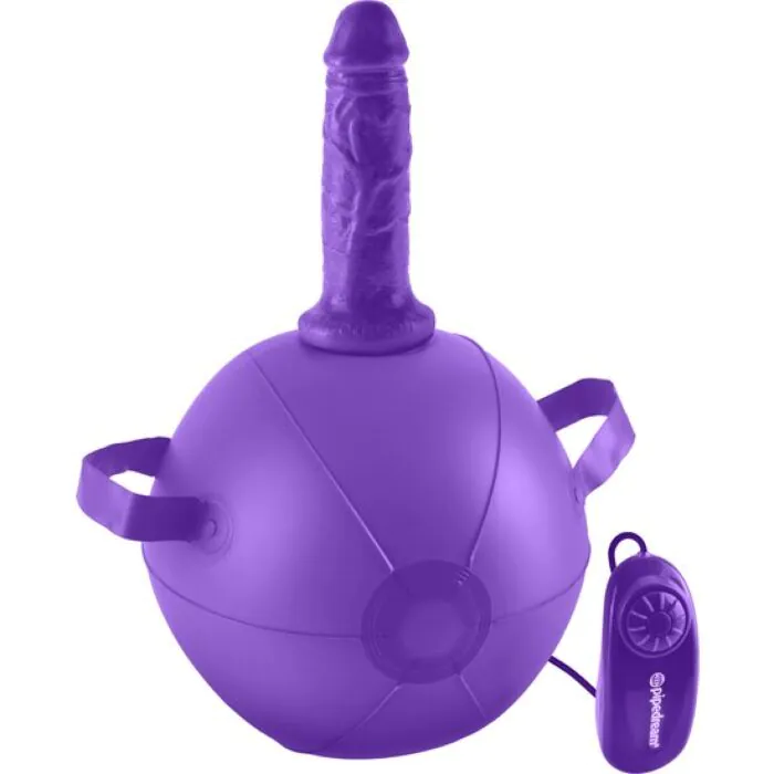 Blow it up, sit on it, and enjoy the wild workout! The Dillio Vibrating Mini Sex Ball is no ordinary exercise ball…it's an inflatable cushion made for pushin' that allows you to slide a lifelike Dillio over the shaft for the most realistic ride ever. Choose a setting on the multi-speed dial and enjoy the powerful vibrations delivered by the firm dildo.