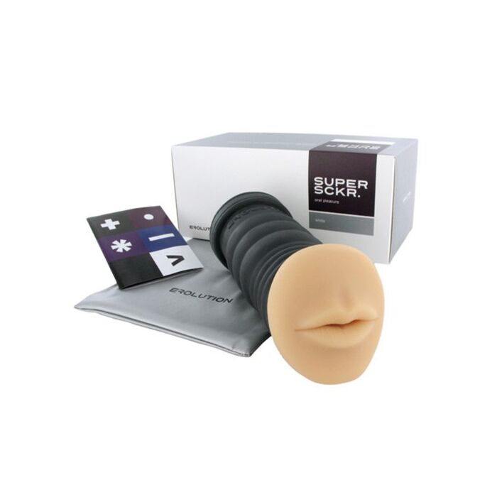 EROLUTION SUPERSCKR WHITE ORAL PLEASURE , es un novedoso masturbador masculino que si te gusta el sexo oral, ya no tendrás que esperar a tu amante, por que gracias a este sencillo dispositivo podrá obtener un nivel elevado de placer.. Fabricado con un material extraordinario: Feelsoft™, libre de látex y Phalatos, está desarrollado para ser usado una y otra vez, cubriendo las necesidades de un hombre autosuficiente. Su diseño único con relieve exterior, facilita su agarre firme, sin que se te resbale. Tiene una suavidad increíble, es como si estuvieras introduciendo tu pene en una boca real, de gran calidad y con un tamaño perfecto. Erolution Super SCKR tiene un estrecho túnel de 1,7 cm de ancho y una longitud de 16, 5 cm. de suculenta forma carnosa, que ha sido especialmente diseñado para los hombres que les complace disfrutar del sexo oral. Tiene una ranura que se ajusta fácilmente al contorno del pene, para poder proporcionar una mayor sensación de placer. Está complementado con una textura estriada que logrará estimular el glande y la cresta coronal. Este masturbador masculino tan realista te ayudará a obtener el máximo placer, simulando la verdadera emoción del sexo oral, que puede llegar a ser mucho más gratificante que una simple masturbación. Es termo sensible por lo que sentirás una experiencia aún más real, serás tu quién ponga la intensidad con un simple apretón, ya que harás en canal más estrecho... Viene con una caja y una discreta bolsa de almacenamiento. EROLUTION SUPERSCKR es 100% seguro y muy fácil de utilizar y limpiar. Úsalo con un lubricante de base acuosa para que no se estropee. Usándolo con frecuencia, fortalecerás tus erecciones y aumentarás la fortaleza del pene, debido al entrenamiento de los tejidos del miembro. Notarás una mejora en pocos meses. Se adapta a todos los tamaños de pene. Atrévete a descubrir el otro lado de la masturbación.