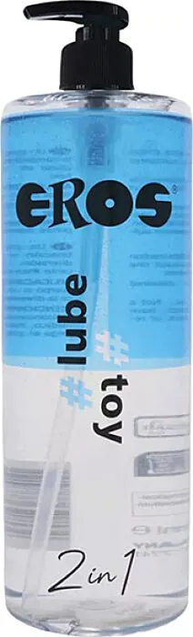 Let me tell you about this one as I would behind the counter: Eros 2-in-1 Lube Toy is a water-based lubricant presented in a large 1000ml bottle with an anti-drip pump. Its thicker-than-average texture gives a very slippery, long‑lasting glide that sits between a light water lube and heavier gel — so you get more slip without switching to oils or silicones. The pump makes dispensing neat and precise, useful if you use lube frequently or want to keep things tidy.