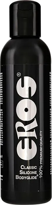 A 500ml bottle of 100% silicone lubricant from EROS Classic Line, made in Germany and dermatologically tested. It gives a silky, non‑sticky glide that lasts far longer than most water‑based lubes. Best if you want minimal reapplication and compatibility with latex condoms; not recommended for use with silicone toys — use a water‑based lubricant for those instead.