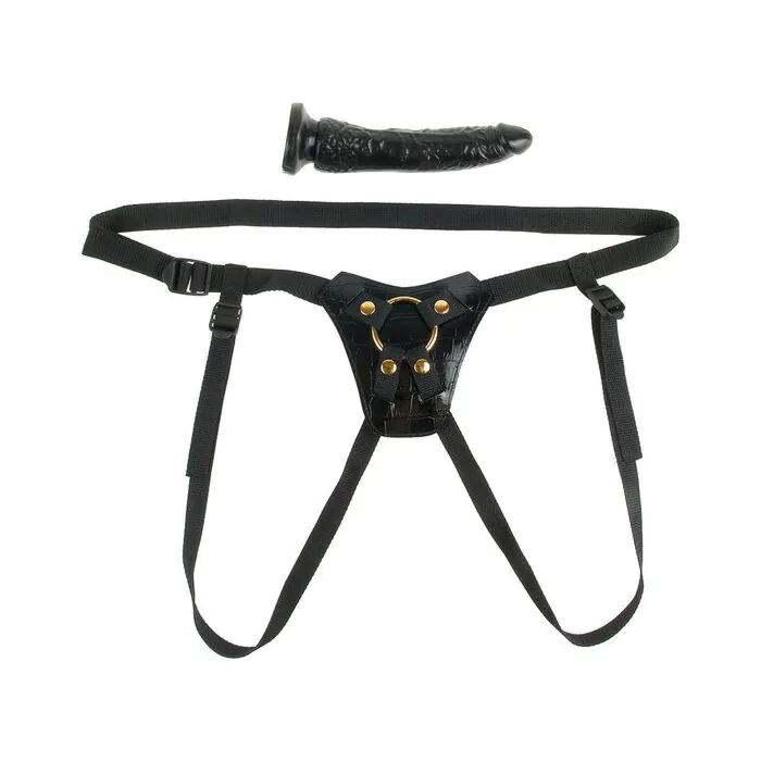 The metal O-ring holds everything in place when the action heats up, and can be removed to accommodate any sized O-ring. The 7-inch phthalate-free dildo features a realistic shape and textures that feel even better than the real thing. The tapered tip eases insertion while the lifelike veiny texture will drive your lover wild.