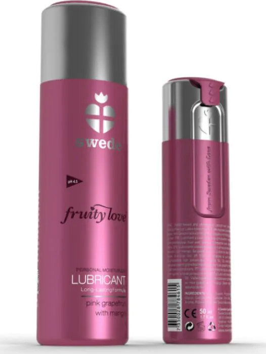 Enjoy smooth, long-lasting lubrication with Swede's Fruity Love Lubricant. This natural formula is 100% condom compatible, non-irritating, and features a delightful pink grapefruit and mango flavour. With a pH balanced at 4.5, it ensures a gentle touch that is safe for sensitive skin.