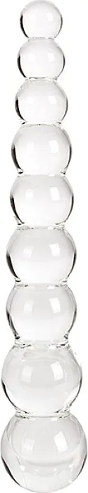 A clear, high-strength glass dildo with a straight, bead-style shaft that increases in size from tip to base. Made for people starting anal play or anyone who prefers a firm, hygienic toy that also responds to temperature. Unlike flexible silicone toys, this one gives crisp, precise sensation and is fully submersible for easy cleaning and bath play.