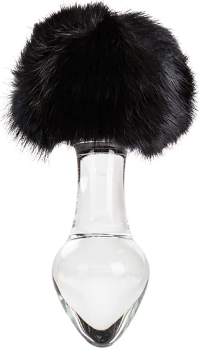 For those wanting a compact glass anal plug with temperature-play and a decorative fur base.