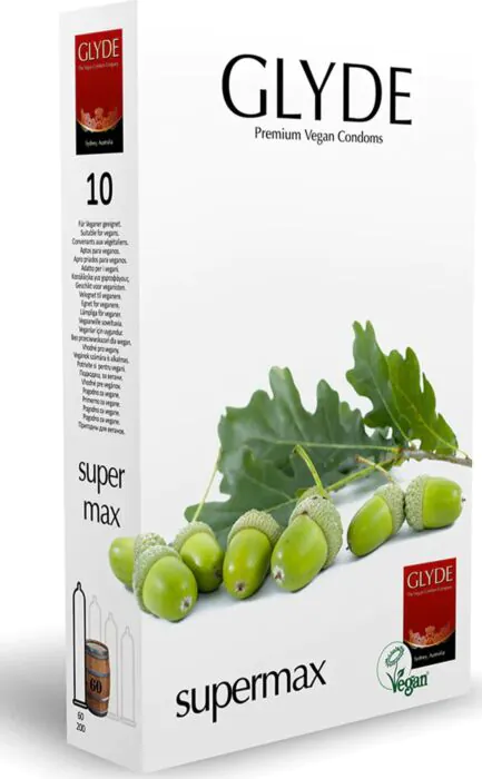 Enjoy a comfortable and safe experience with Glyde Ultra Supermax vegan condoms, crafted from natural latex. Designed for those who need an extra-large fit, these condoms provide ample space for a more enjoyable intimate encounter. They are 100% vegan, free from spermicides, and completely compatible with water-based lubricants.