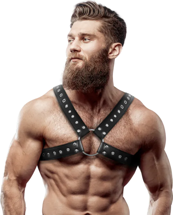 Unleash your confidence with this adjustable eco-leather chest harness. Designed for men who want to enhance their physique and stand out.