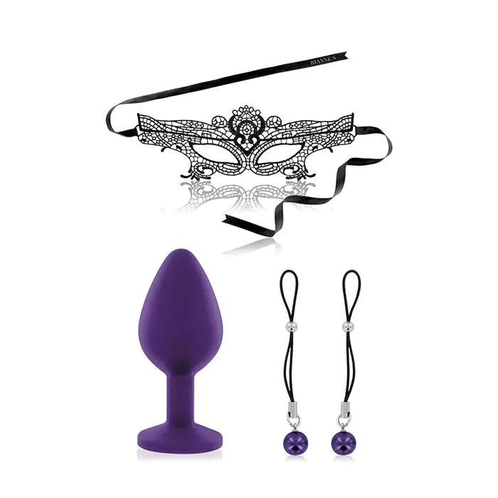 A compact bondage kit from Rianne S that brings blindfolded play, a plug and aesthetic nipple pendants together in one box. Suited to couples or curious beginners who want to add sensory and light restraint play to the bedroom without committing to full bondage gear. Elegant in presentation and aimed at sensual, tactile exploration.
