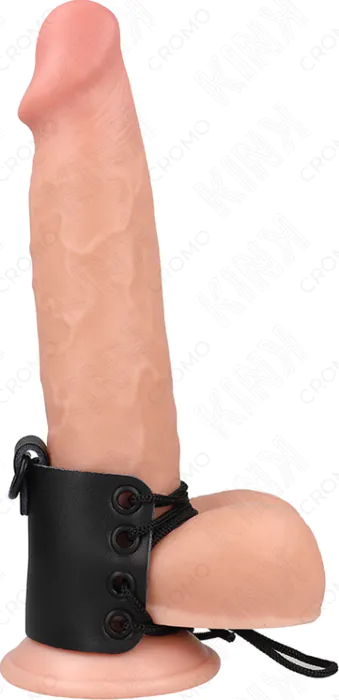 Experience enhanced pleasure and control with the KINK Leather Cock Ring. Adjustable straps ensure a snug fit, great for those exploring BDSM dynamics.