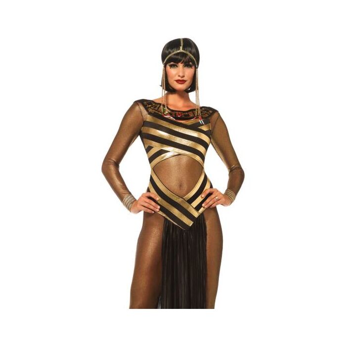 Disfraz De 3 Piezas, Diosa Isis. Incluye catsuit dorado con vestido con collar de joyas tiara colgante estilo boho.