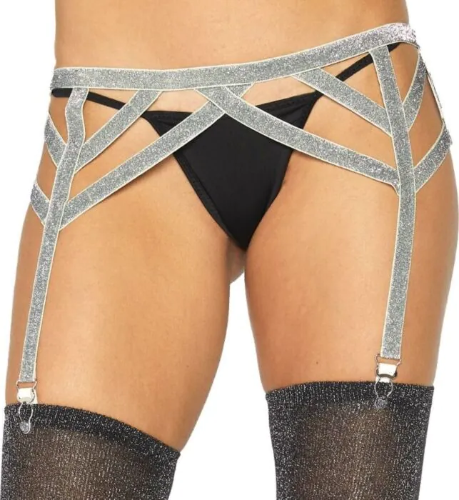 Add a touch of glamour to your lingerie collection with this shimmering silver lurex garter belt from Leg Avenue. Designed for those who appreciate elegance and seduction.
