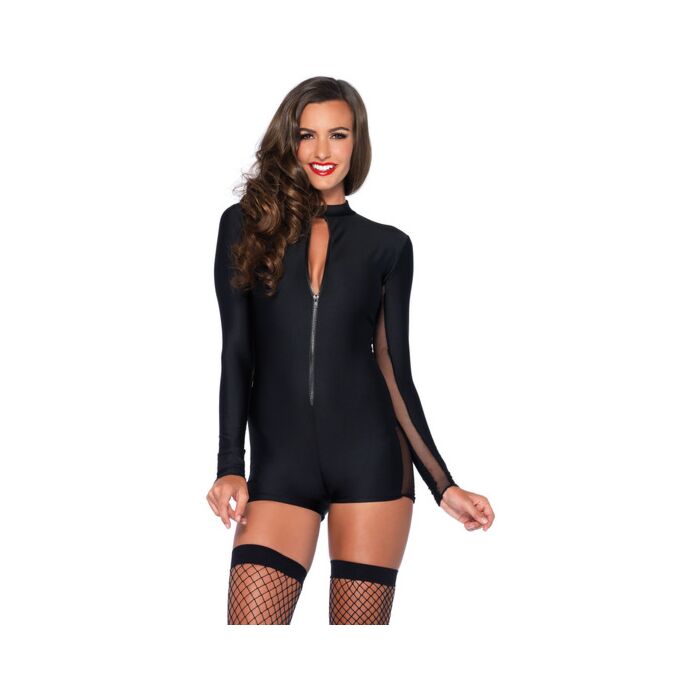 Long sleeve dress with front zipper - black