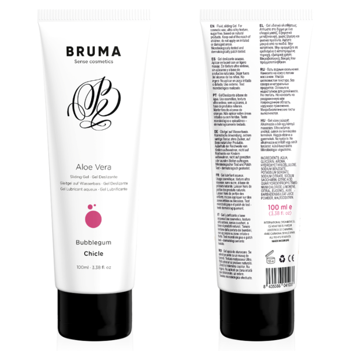Discover the exquisite sensation of Bruma's Aloe Vera lubricant, enriched with a delightful chewing gum flavour. This 100 ml gel promises a silky, non-sticky glide, ideal for enhancing your intimate moments. Perfect for both solo play and shared experiences, it offers comfort and hydration for sensitive skin, making every touch feel divine.