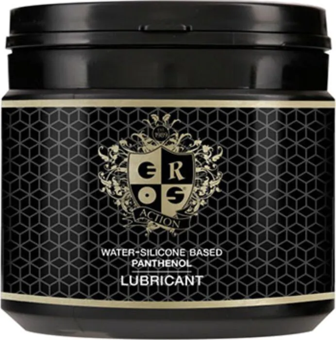 A hybrid water‑and‑silicone lubricant from Eros formulated with panthenol for durable, moisturising glide. Large 500 ml canister designed for partner play and fisting sessions where a long-lasting, non‑sticky feel matters. Good if you want a water‑soluble option that still gives extended lubrication; not for those who need a purely silicone or flavoured lubricant.