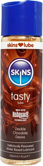 This is a 130ml water-based flavoured lubricant from SKINS, scented and flavoured as Double Chocolate. It’s made for couples and solo users who want a pleasant taste without compromising toy and condom compatibility. What sets it apart is SKINS Reaquav8 technology — you can reactivate the glide with a light lick or a spray of water, so the sensation and flavour are easy to refresh.