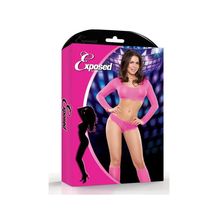 De la fantástica colección Magic Silk Exposed llega este conjunto 3 piezas rosa, top manga larga con escote culotte y calentadores a juego.