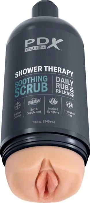 Elevate your pleasure game with the PDX PLUS+ Shower Therapy, designed to mimic a regular shampoo bottle for ultimate discretion. The realistic inner sleeve crafted from Fanta Flesh delivers hyper-realistic sensations, ensuring your self-care routine remains private.