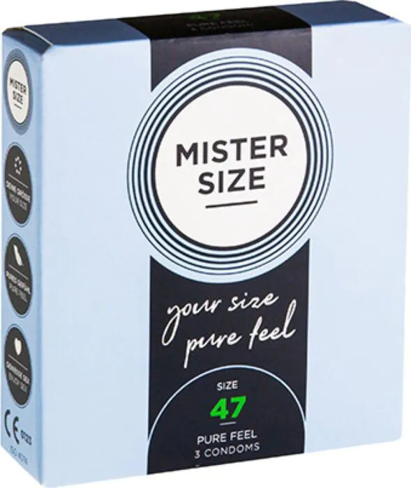 MISTER SIZE 47mm condoms provide a snug and secure fit for those with slimmer penises. Experience heightened sensations without discomfort.