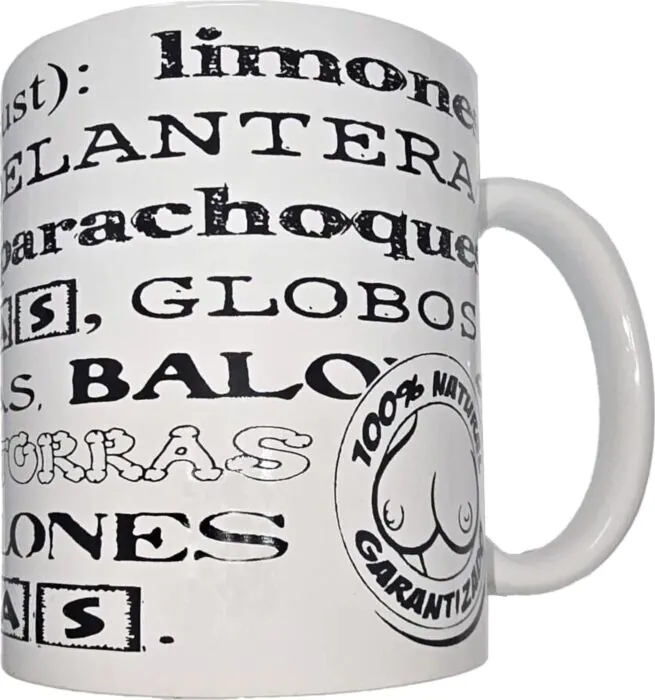 Start your day with a cheeky smile using this ceramic mug featuring playful erotic synonyms. Indicado for gifting or a fun addition to your collection.