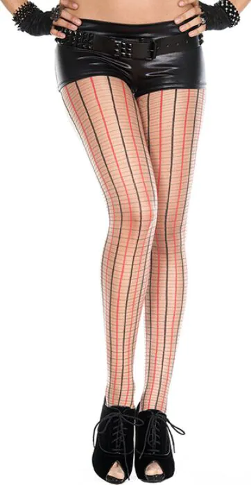 These are checked-pattern tights from Music Legs, presented in a red and black check. Think of them as a way to lift an otherwise plain outfit — the pattern reads as a style detail rather than a loud statement. They’re aimed at people who enjoy patterned hosiery for daytime or going-out looks and who prefer a single-piece solution that sits smoothly under skirts and dresses.