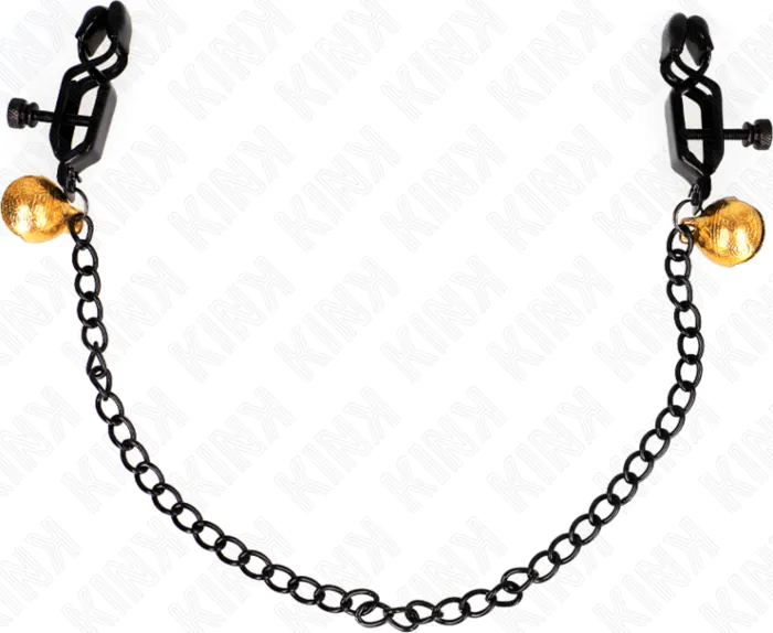 Auditory stimulation meets sensual control with these KINK nipple clamps featuring bells that jingle with every movement. Crafted from durable metal and plastic, these clamps are designed for both comfort and excitement, with a 30 cm chain allowing for an added visual element during play.