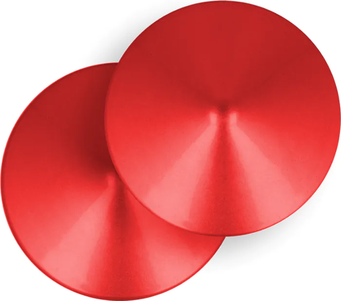 These reusable nipple covers in a striking red offer a bold addition to your intimate play. Crafted from non-porous materials, they’re great for anyone looking to enhance their sensual experience with a touch of metallic flair.
