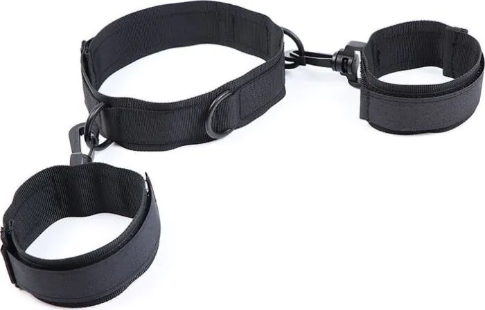 Experience comfortable restraint with the OHMAMA FETISH nylon handcuffs and collar. Adjustable with Velcro for a versatile fit, perfect for both beginners and enthusiasts.