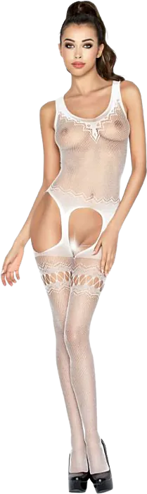 Elevate your intimate moments with this stunning fishnet bodystocking. Designed for those who appreciate sensuality and elegance, it features a daring crotch opening and exquisite embroidery.