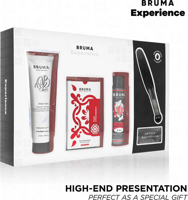 Unleash your sensual side with the BRUMA XPERIENCE Sweet Strawberry Temptation Kit. Featuring a stimulating gel and a range of accessories, it's designed for those who appreciate slow yet intense experiences.