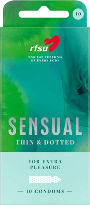 A straightforward pack of lubricated, lengthwise-dotted condoms from Rfsu. They give a standard, comfortable fit with added texture along the shaft for more sensation. Good if you want a reliable latex condom that gives a bit more stimulation than a plain sheath, without moving to novelty sizes or materials.