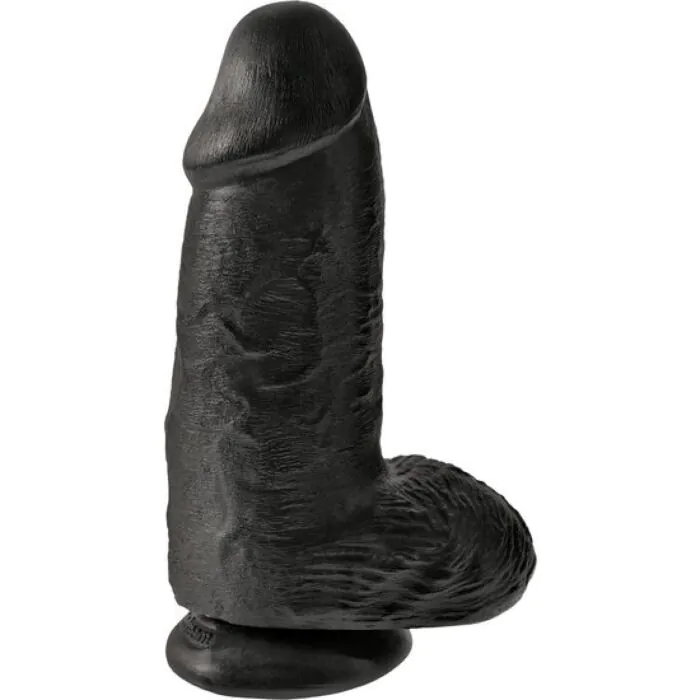 Discover the King of dildos! The King Cock Chubby Penis with Testicles will take you straight to your wildest fantasies. With its 23 cm of pleasure in black, every detail has been designed for an ultra-realistic experience. Made of PVC, it is compatible with your favorite lubricants and easy to clean. Make your boldest dreams come true with this King between your sheets!