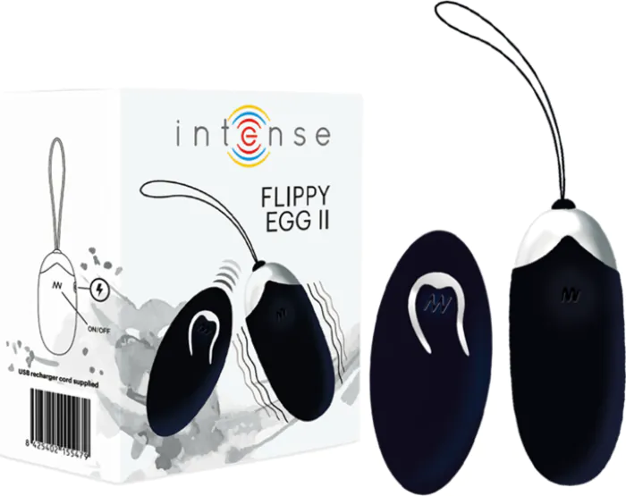 Experience thrilling vibrations with the INTENSE Flippy II vibrating egg. With 12 vibration modes and a 10-metre remote range, it's perfect for adventurous couples and solo play.