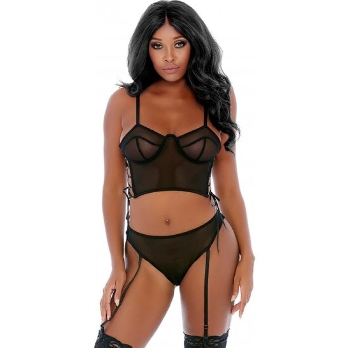 Lingerie Set Leg Avenue Elegant S/M with Semi-Transparent Bra