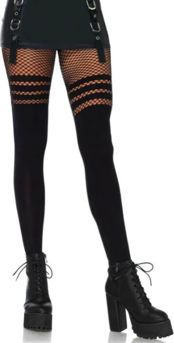 Pantyhose Leg Avenue Seamless Opaque with Fishnet Stripes