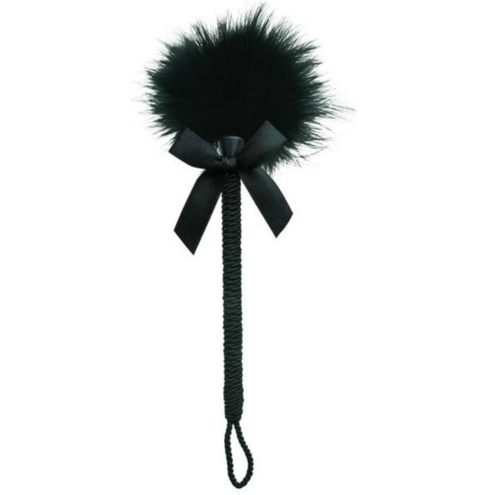The soft, black, Marabou feathers tickle, taunt and tease Adorned with a black bow, the handle is wrapped with delicate satin rope and finished with a finger loop