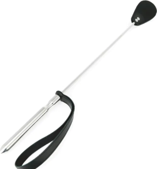 Crafted from polished stainless steel, this riding crop features a dual leather tip for precise impact. Great for both beginners and experienced users looking to enhance their play.