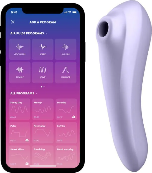 Experience the thrill of simultaneous clitoral and G-spot stimulation with the Satisfyer Dual Pleasure. Featuring independent control of Air Pulse pressure waves and G-spot vibrations, this vibrator offers a tailored experience that adapts to your desires. Crafted from body-safe silicone, it feels luxurious against the skin while providing powerful sensations through its multiple modes.